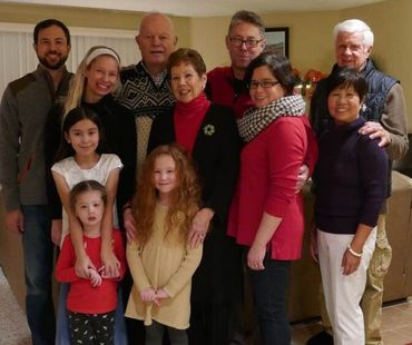 Back L-R: Lee, Heather, Bruce Bates Sr, Ellen Bates, Bruce Bates Jr, Linda, Prima and Al.